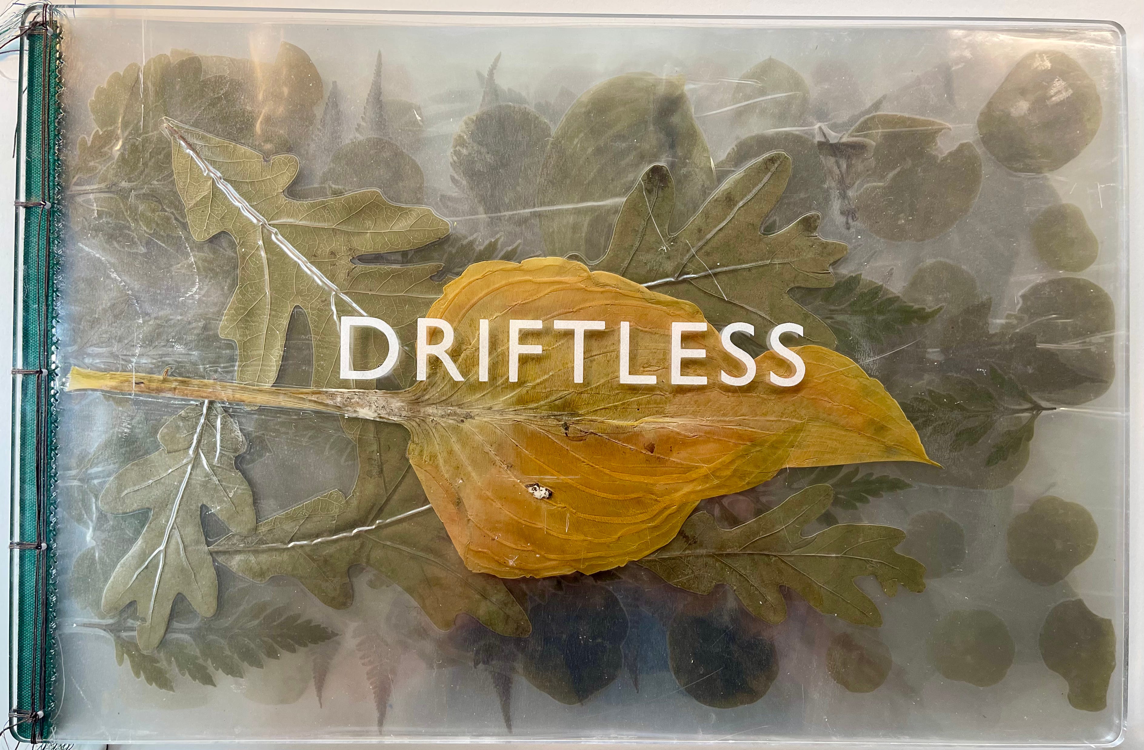 In the summer of 2025 three beings very precious to me were dying. Their decline was rapid and brutal to witness. All the vitality, enthusiasm, and zest for living slipped from them minute by minute. As a caregiver to two of these beings I was deeply enmeshed in their day to day struggles just to live. It was during this time I purchased a laminating machine and plastic sleeves. I began laminating the leaves of the plants in and outside my house. Ostensibly my motivations were to study these ephemeral vegetal constructions; only after the passing of my stepfather did I realize it was an attempt to stop time, to preserve life in all its intricacies. But life and death wait for no one, and have complex methods to thwart hubris. Though sealed hermetically in polypropylene the air, water, and carbon that made the leaves also contained the means of their own dissolution: mold, fungus, bacteria. These microorganisms set to break down organic matter immediately in a vacuum, and the leaves are changing still- rotting and molding in their sealed pouches. So the book becomes a meditation on life and death and desuetude, in addition to the historical reference to botanical literature and studies. To me it begs the question: are plants consciousness made manifest? Is each leaf a word? is each plant a poem? There is a lovely vexation built into the structure of the book: the matter of the book is held close but forever apart, always beyond intimate contact. The juxtaposition of leaf shapes and morphology possible with clear pages gives a gentle vertigo as the reader falls through the wild thicket of the text. The title refers to the driftless region of Wisconsin. This is my second botanical meditation on the region; the first is titled Driftless Botany, and it is in the rare books collection of the Milwaukee Public Library.